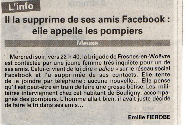 Faites attention quand vous             « supprimez » un ami sur Facebook, vous risquez de voir débarquer les pompiers chez vous !